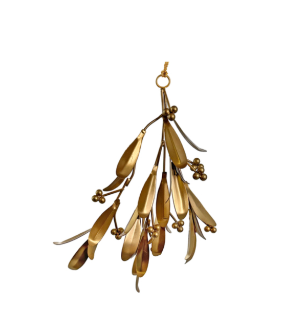 WIRE MISTLETOE ORNAMENT BRASS LEAVES AND GLASS BEADS 25CM/1