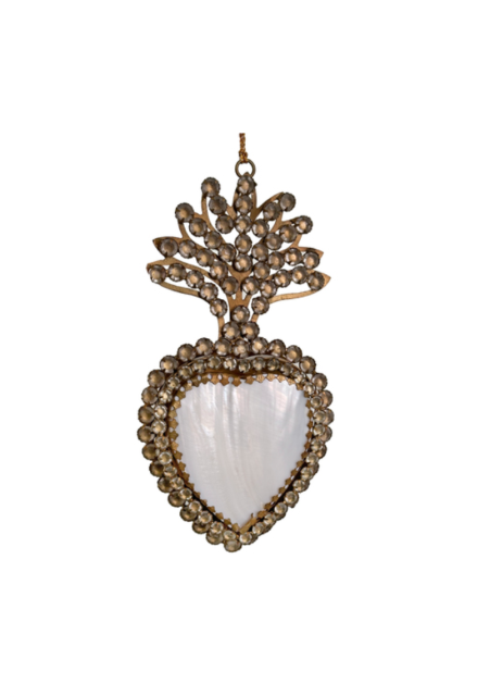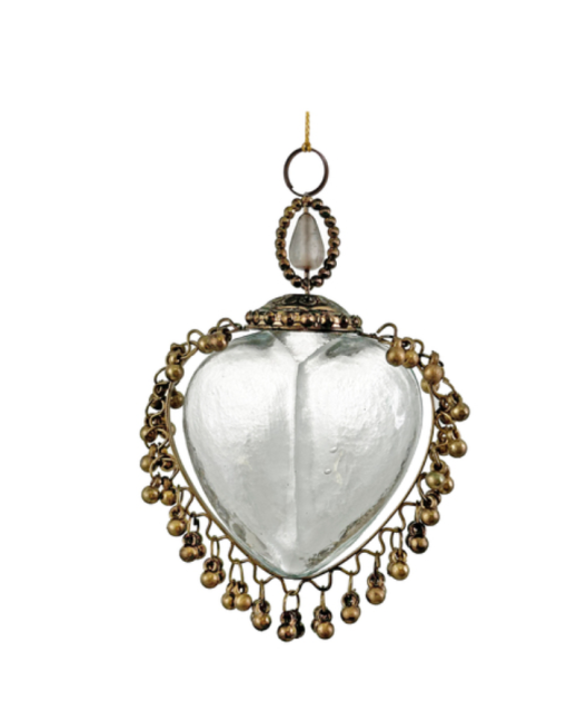 Opening heart glass beaded antique gold 19cm