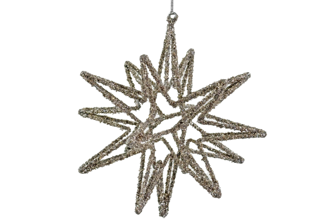 Wire 3D star silver glass glitter 11,5cm