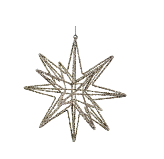 Wire 3D star silver glass glitter 15cm