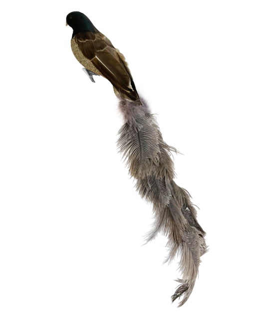 Feather bird silver glass glitter body with brown ostrich feather tail 56cm