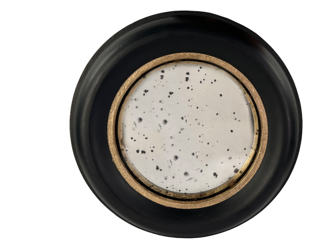 ANTIQUE CONVEX MIRROR WOOD FRAME